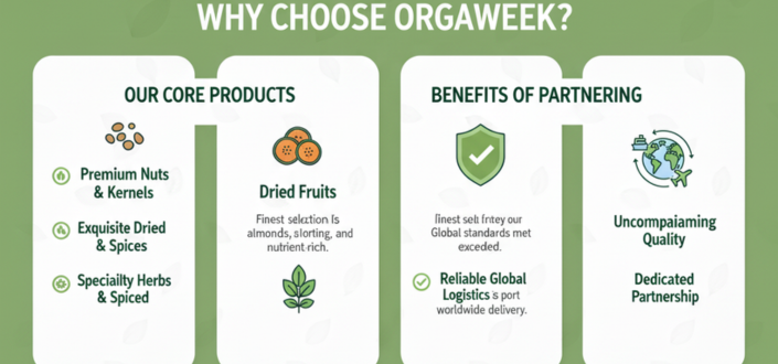 At Orgaweek, we believe in bringing nature’s purest flavors to your kitchen. Our range of premium-quality powders and natural products are sourced from trusted farms, processed with care, and packaged to preserve freshness and nutrition. Whether for home cooking, professional kitchens, or wholesale supply, Orgaweek delivers taste, quality, and health in every pack. Experience the difference of nature—pure, fresh, and full of flavor.